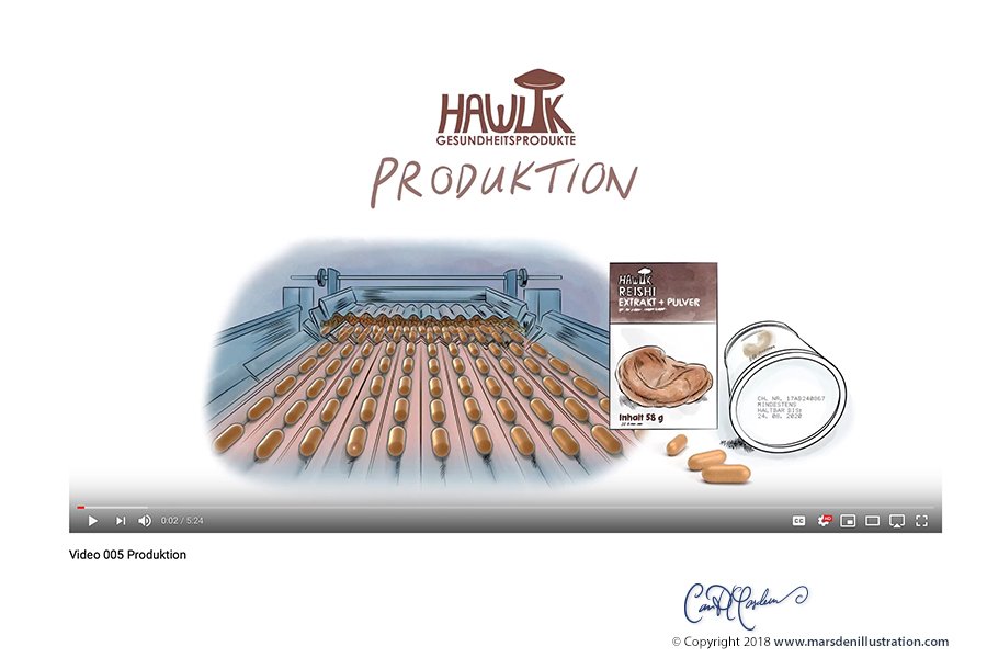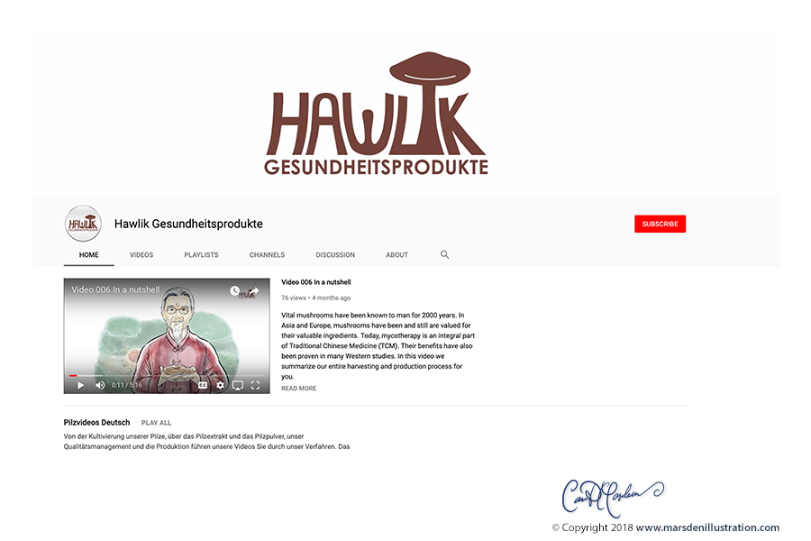 I had the great pleasure of adapting a series of texts for Hawlik Gesundheitsprodukte GmbH about the harvesting and production phases of their high-quality vital mushroom products and adapt them to short videos with elegant water color illustrations and pleasing voice overs.