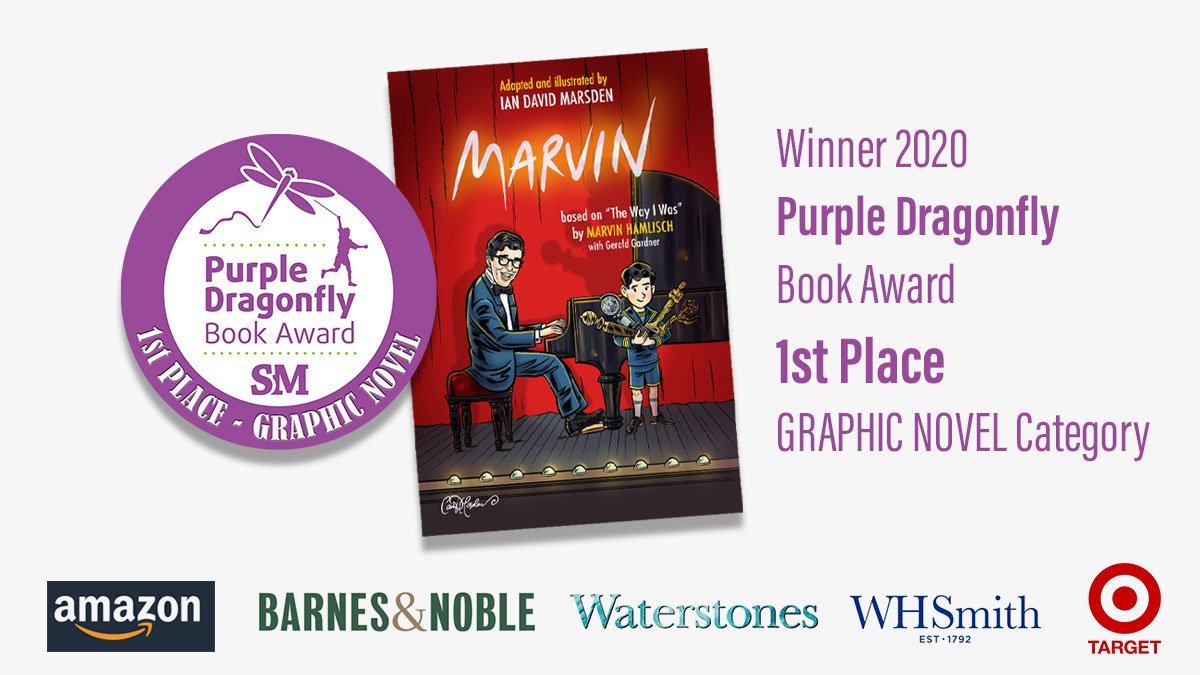 I am thrilled to announce that my book MARVIN about the life of Broadway and Hollywood composer Marvin Hamlisch has won 1st Place in the Graphic Novel Category of the 2020 Purple Dragonfly Awards.