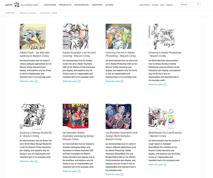 Various drawing tutorial videos demonstrating how I work with Wacom Cintiq 21UX and Cintiq27QHD pen displays in Adobe Photoshop, Adobe Illustrator, Autodesk Sketchbook Pro, Manga Studio and other design software. More videos for Wacom are in production.
